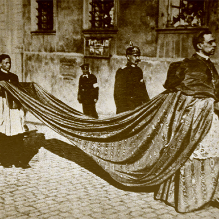 1952 - Papež Pius XI. nařídil zkrácení délky vlečky na polovinu (Valde solliciti).